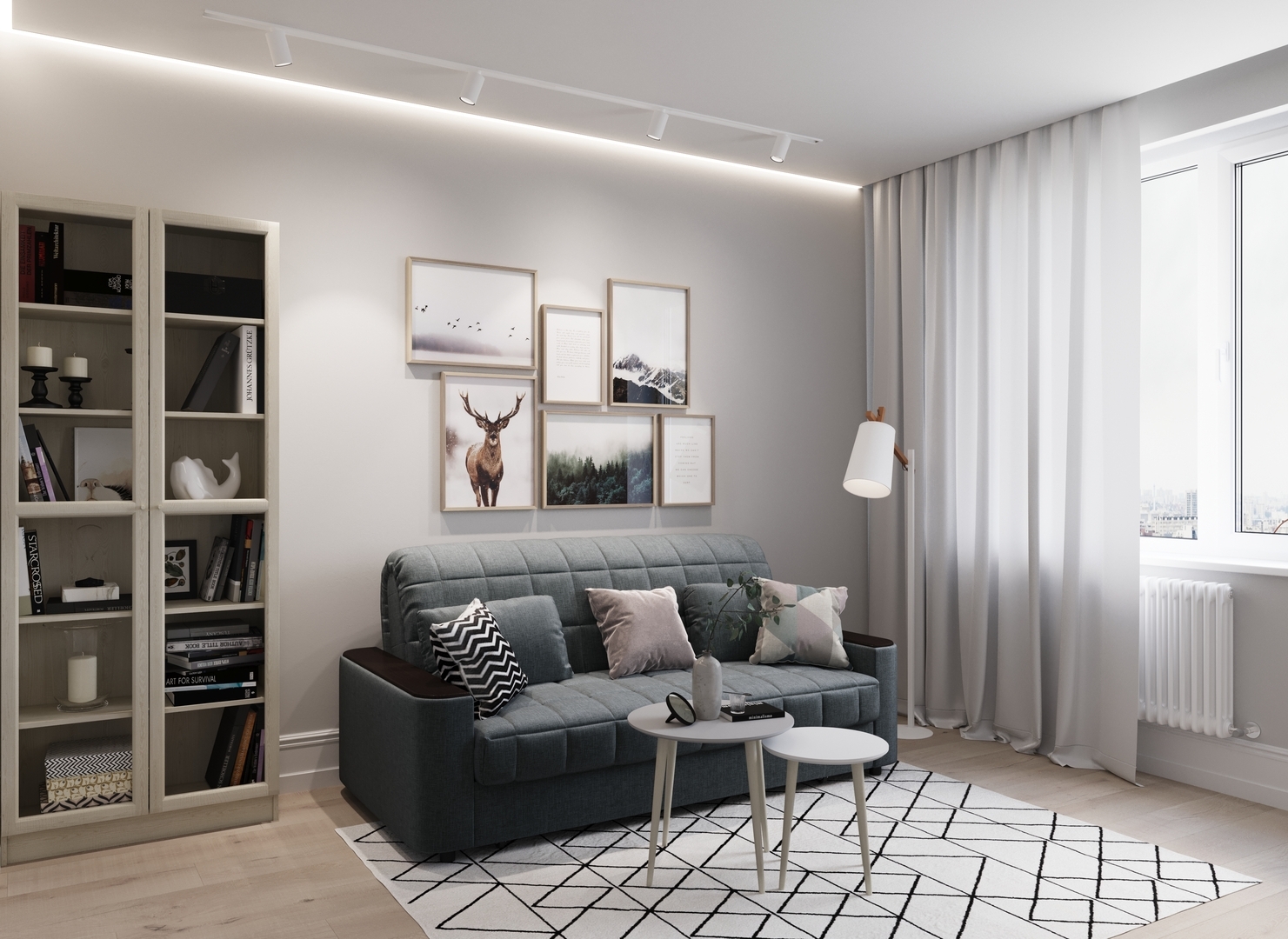 Спинка, выполненная в обивочной ткани, позволяет ставить диван в центре комнаты и зонировать пространство.