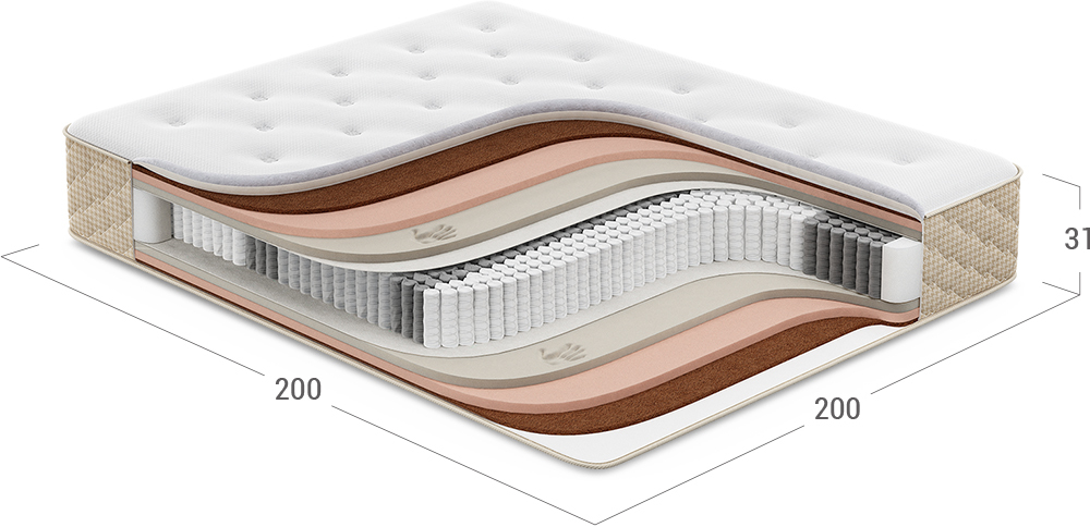 Значительно повышает жесткость спального места, обеспечивает равномерную поддержку тела во время сна. Полностью состоит из натуральных материалов. Добавляет прочности всей конструкции матраса.