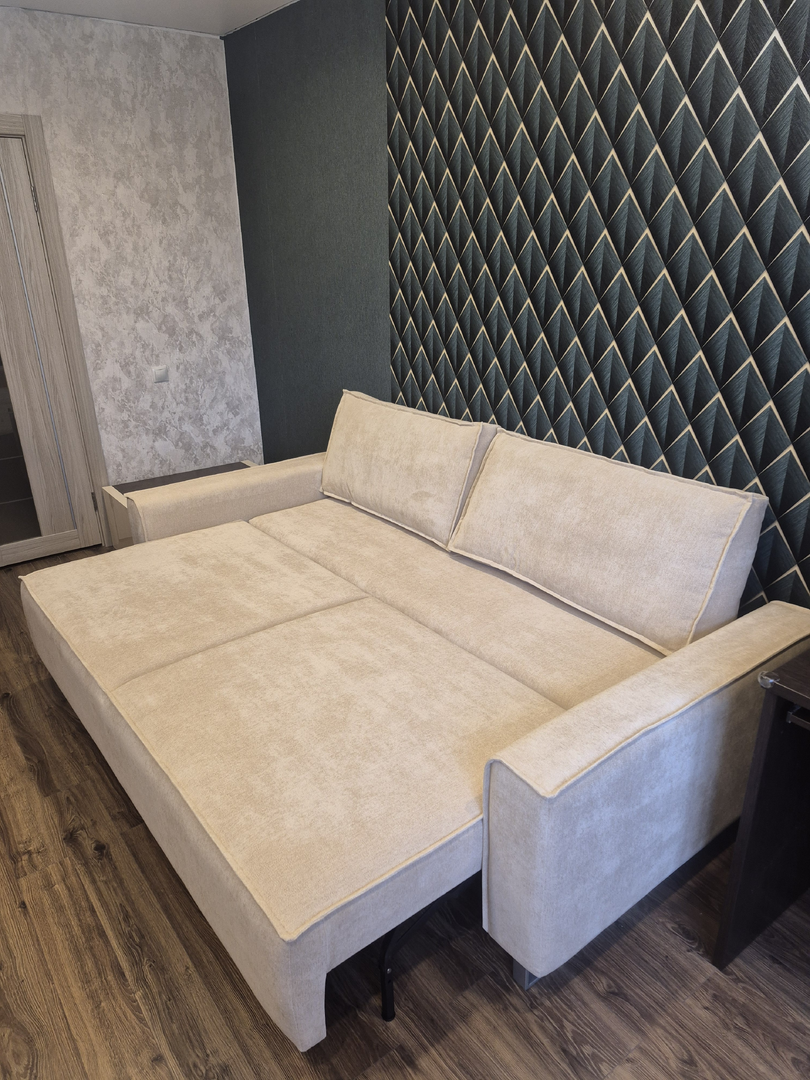 Приобрели диван, модель 005, давно присматривались к ней, привезли диван быстро. Приобрели диван в Ставрополе в ТЦ Северный. Диван очень комфортный, удобно мыть и пылесосить, за счет высоких ножек. У дивана глубокая посадка что позволяет спать не раскладывая его. Цвет ткани - спокойный.