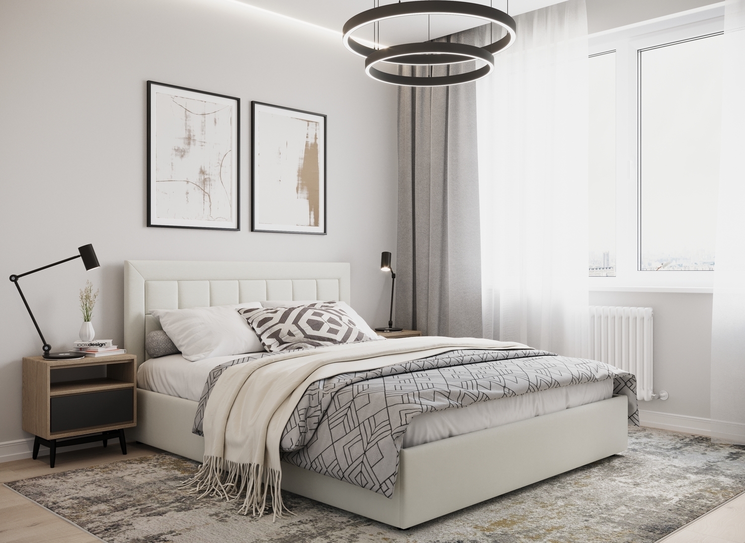 Регулируемый подъемный механизм с газовыми амортизаторами позволяет плавно и бесшумно поднимать и опускать спальное место.