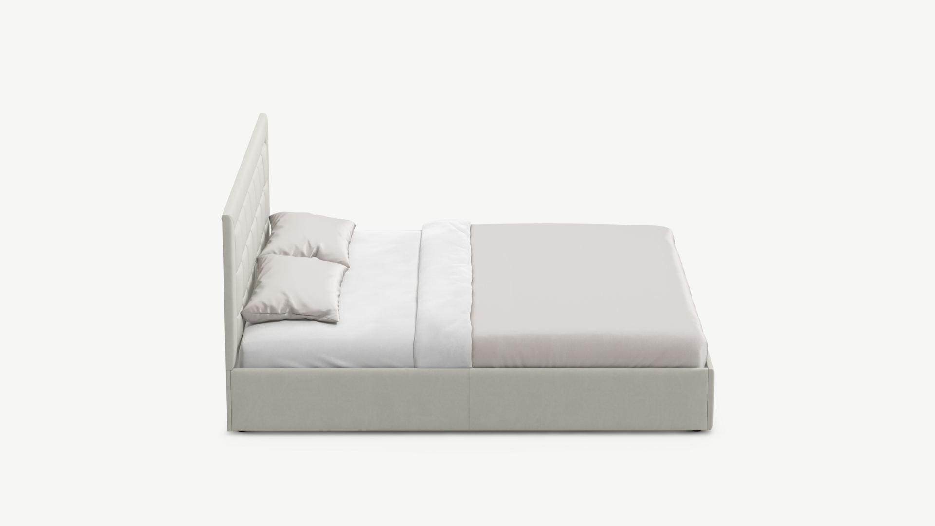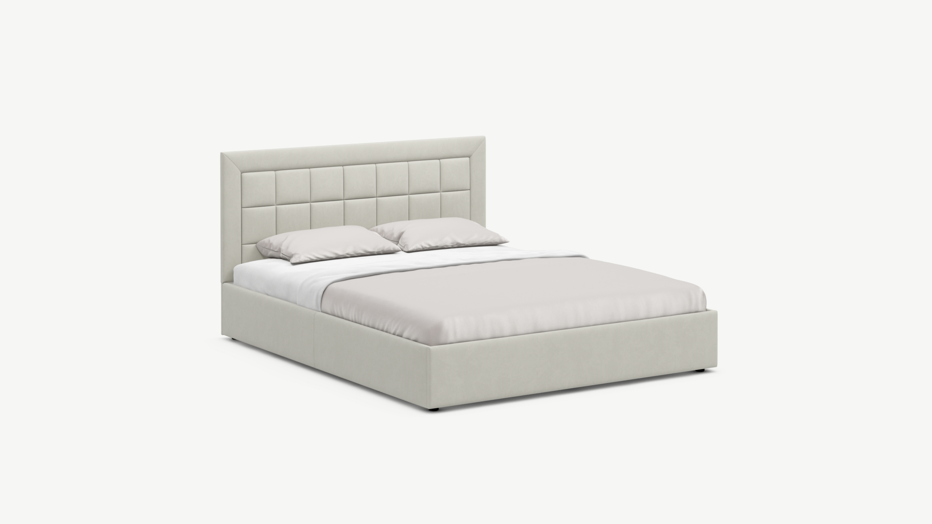 Кровать MOON FAMILY 1251 украшена объемной стежкой-рисунком. Особую выразительность стежка в крупный квадрат получает за счет глубины шва и фактурности проступающего рисунка. Помещенная в центр изголовья, стежка обрамлена тканью, словно картина – рамой. Формы MOON FAMILY 1251 оставлены максимально простыми. Едва заметные вертикальные шовчики на боковых царгах кровати добавляют образу шарма, удачно оттеняя уверенное звучание прямых и искусный декор изголовья.