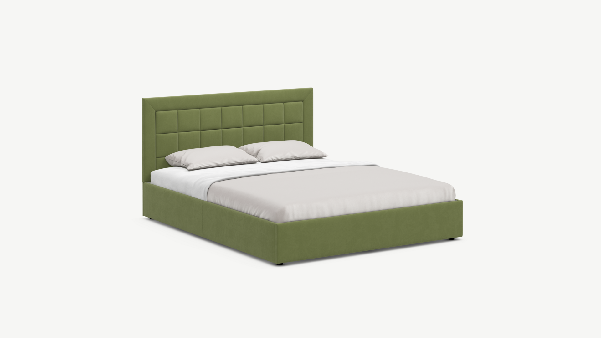 Кровать MOON FAMILY 1251 украшена объемной стежкой-рисунком. Особую выразительность стежка в крупный квадрат получает за счет глубины шва и фактурности проступающего рисунка. Помещенная в центр изголовья, стежка обрамлена тканью, словно картина – рамой. Формы MOON FAMILY 1251 оставлены максимально простыми. Едва заметные вертикальные шовчики на боковых царгах кровати добавляют образу шарма, удачно оттеняя уверенное звучание прямых и искусный декор изголовья.