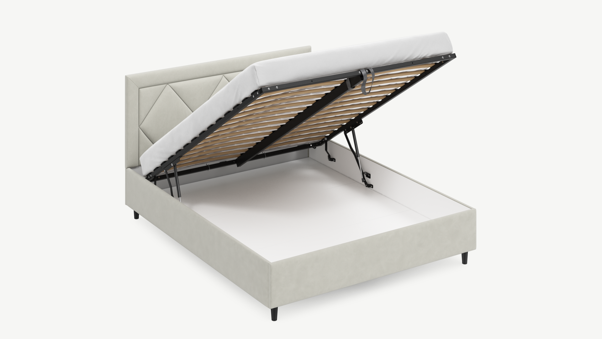 • Скрытая под основанием вместительная емкость без внутренних перегородок позволяет использовать всю площадь подкроватного пространства для хранения вещей.
