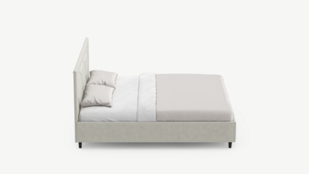 Фактура обивочного материала подбирается дизайнерами с учетом технологических и стилевых особенностей кровати.