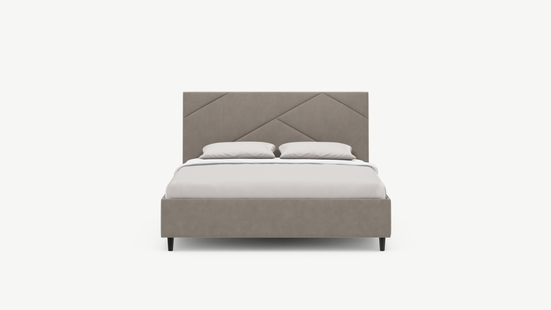 Элегантным и практичным акцентом служат скрытые карманы, расположенные по его углам. Лаконичные формы объемных царг создают единый гармоничный образ и фокусируют внимание на центральном текстурном элементе кровати.