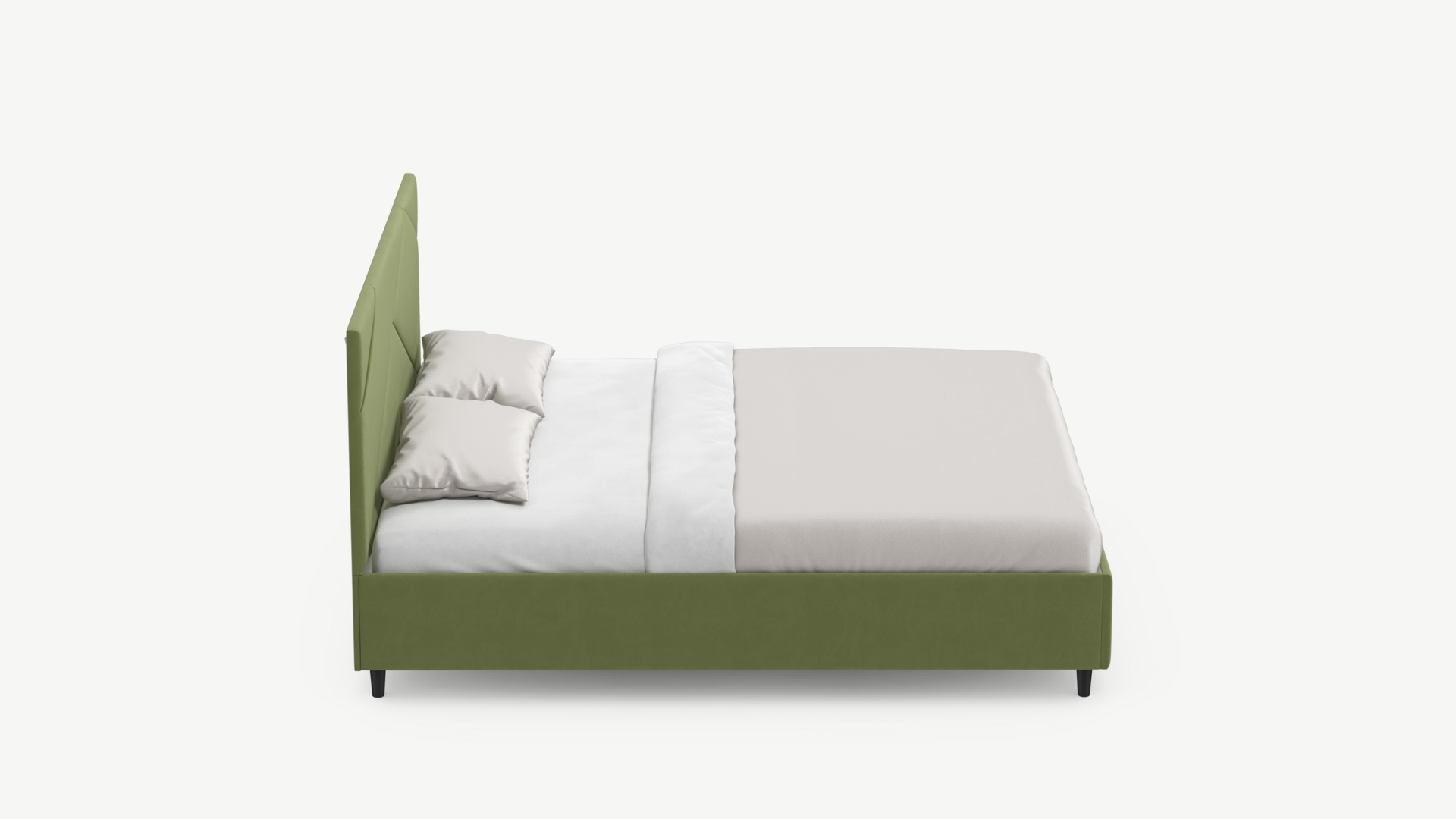 Элегантным и практичным акцентом служат скрытые карманы, расположенные по его углам. Лаконичные формы объемных царг создают единый гармоничный образ и фокусируют внимание на центральном текстурном элементе кровати.