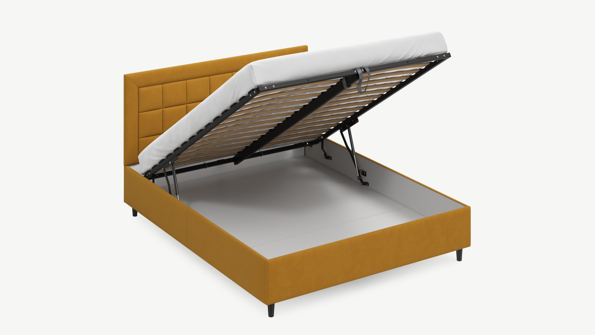 • Скрытая под основанием вместительная емкость без внутренних перегородок позволяет использовать всю площадь подкроватного пространства для хранения вещей.