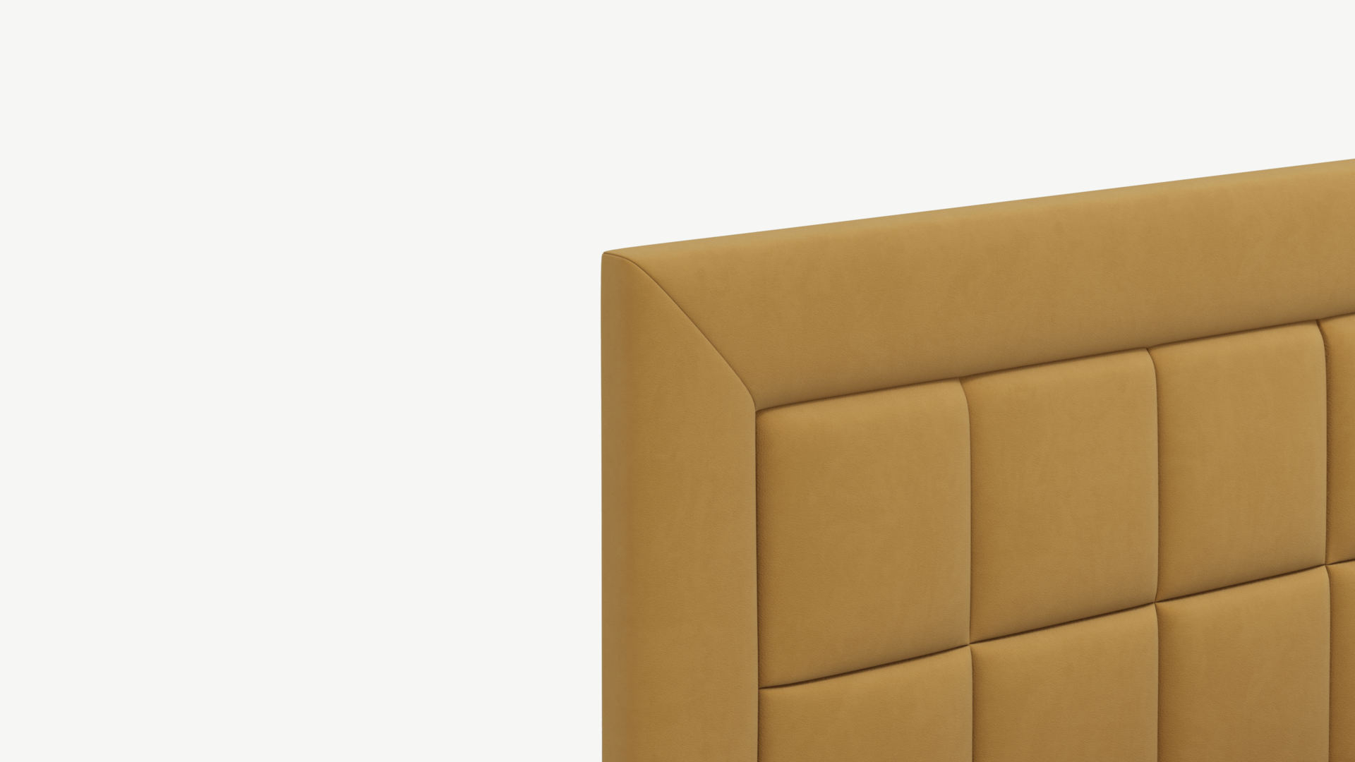 Изголовье декорировано рельефным рисунком стежки в крупный квадрат, получившим особую фактуру за счет глубины шва.