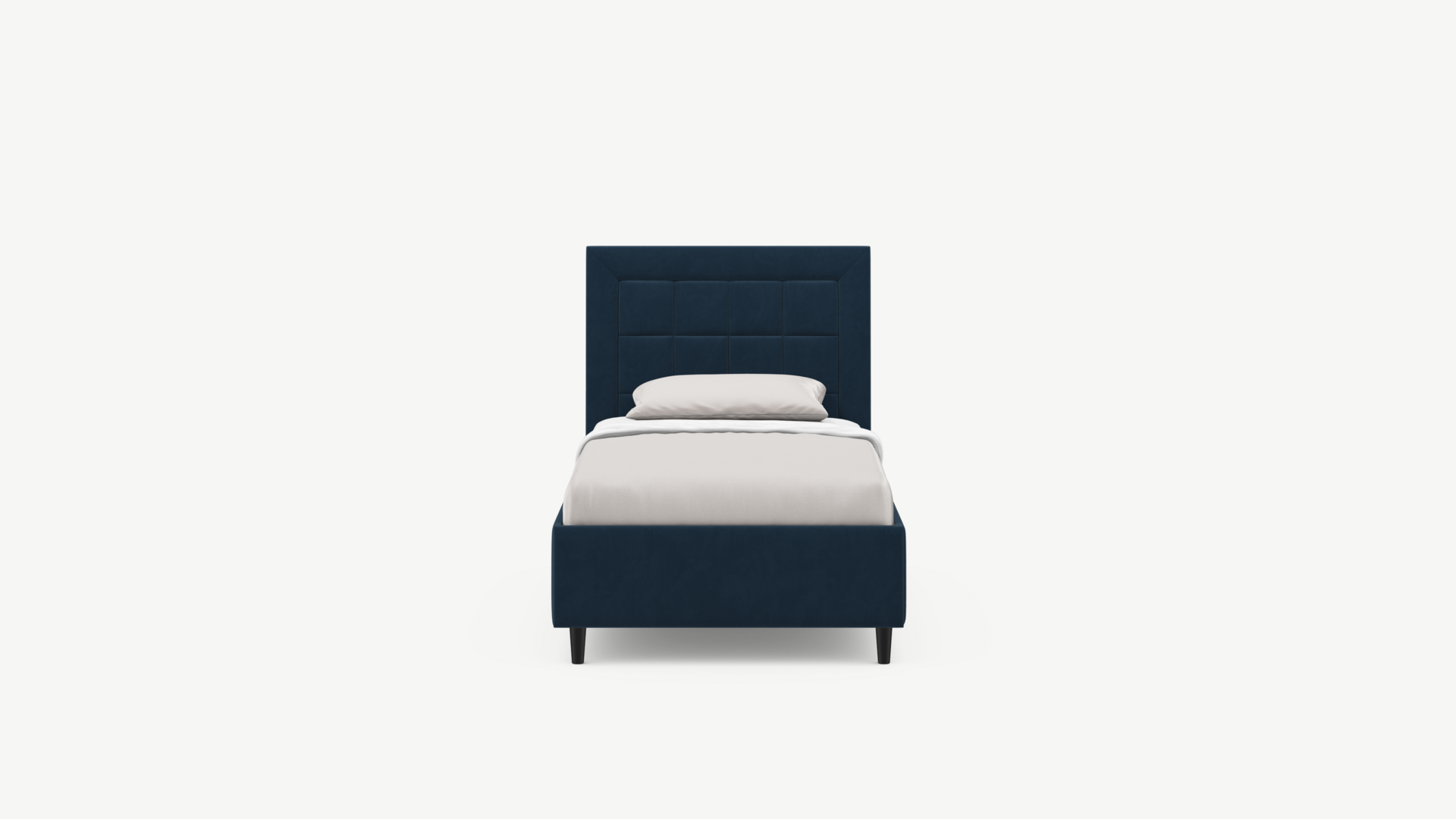 Стежка помещена в центр изголовья и обрамлена, словно картина. Объемные царги завершают цельную фигуру кровати и становятся гармоничным дополнением ее образа.