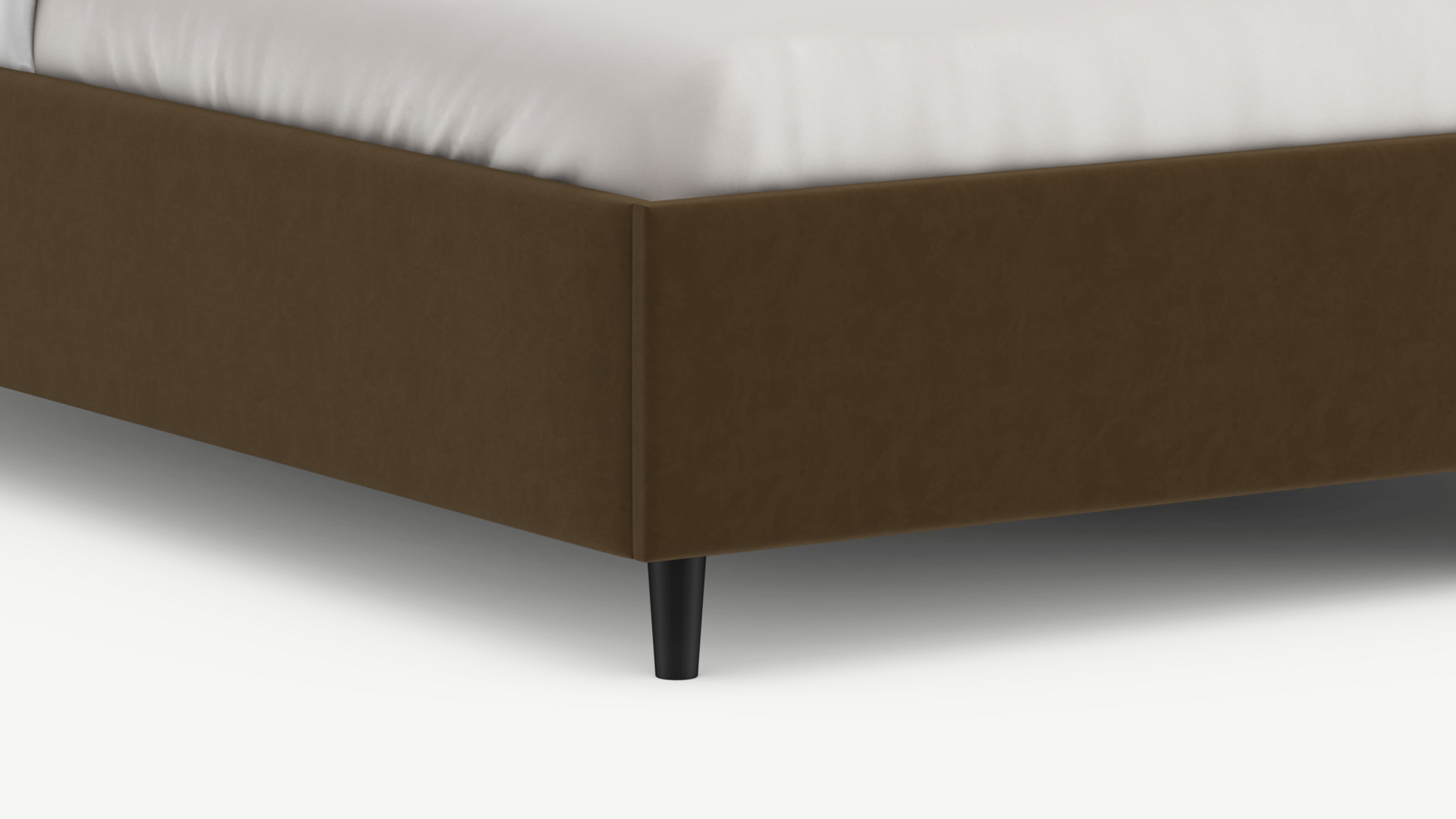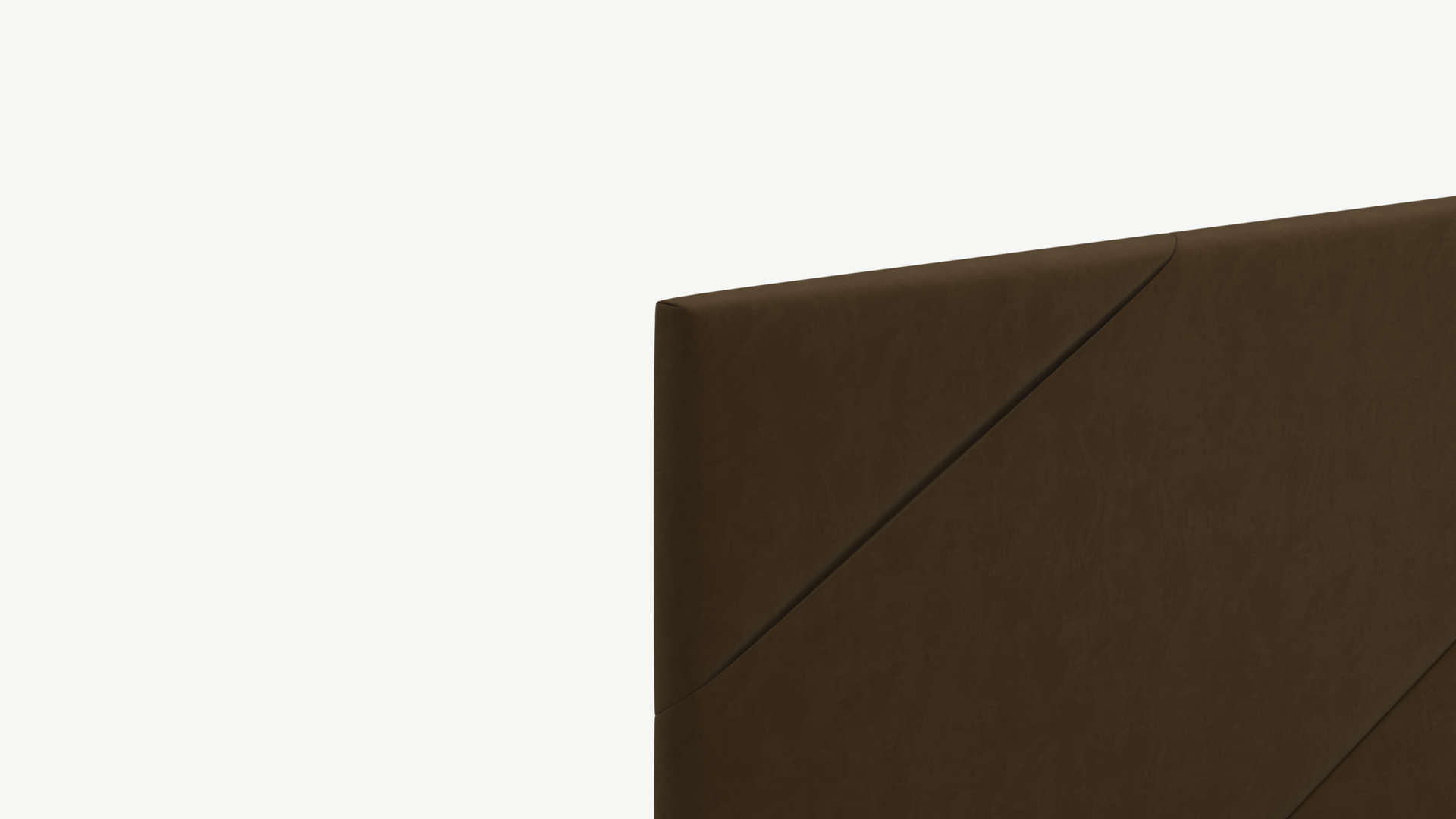 Элегантным и практичным акцентом служат скрытые карманы, расположенные по его углам. Лаконичные формы объемных царг создают единый гармоничный образ и фокусируют внимание на центральном текстурном элементе кровати.
