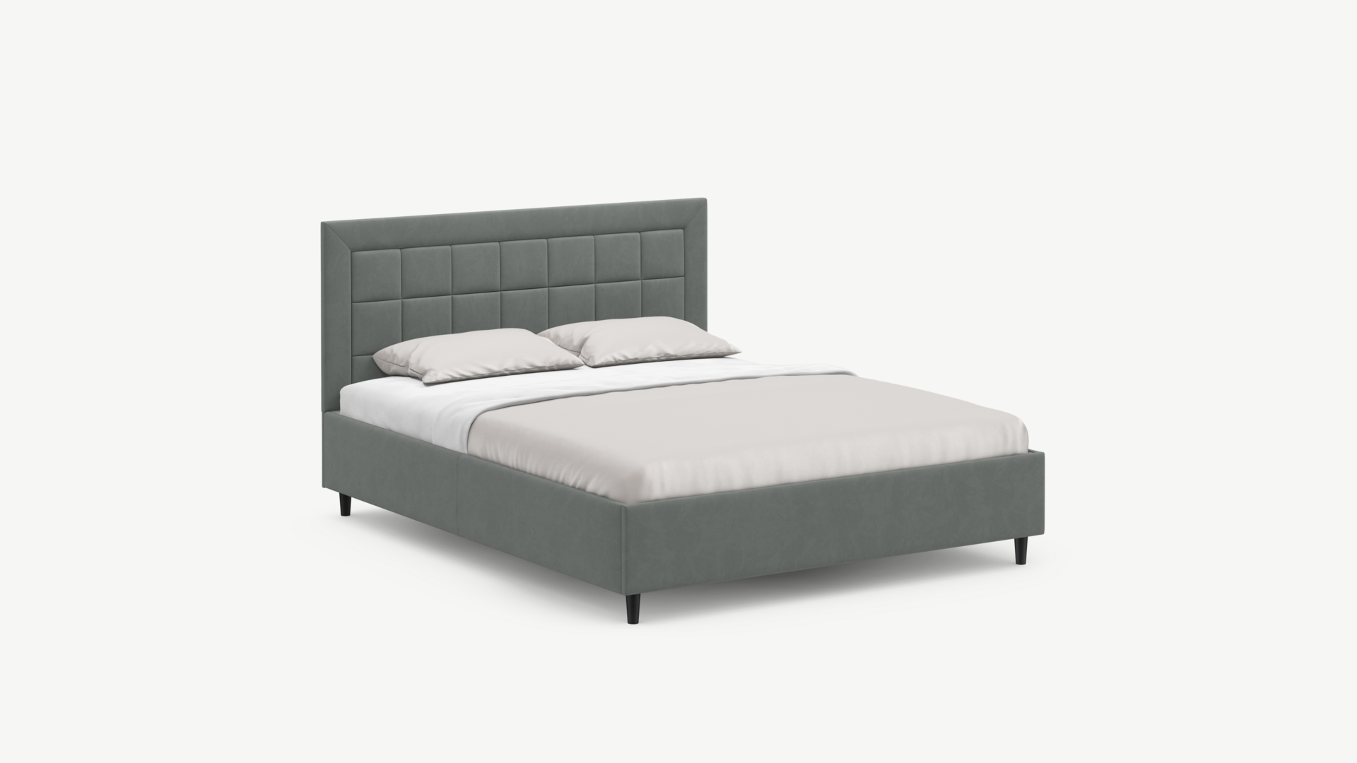Изголовье декорировано рельефным рисунком стежки в крупный квадрат, получившим особую фактуру за счет глубины шва.