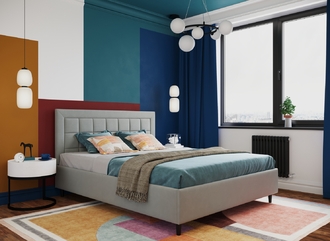 Фактура обивочного материала подбирается дизайнерами с учетом технологических и стилевых особенностей кровати.