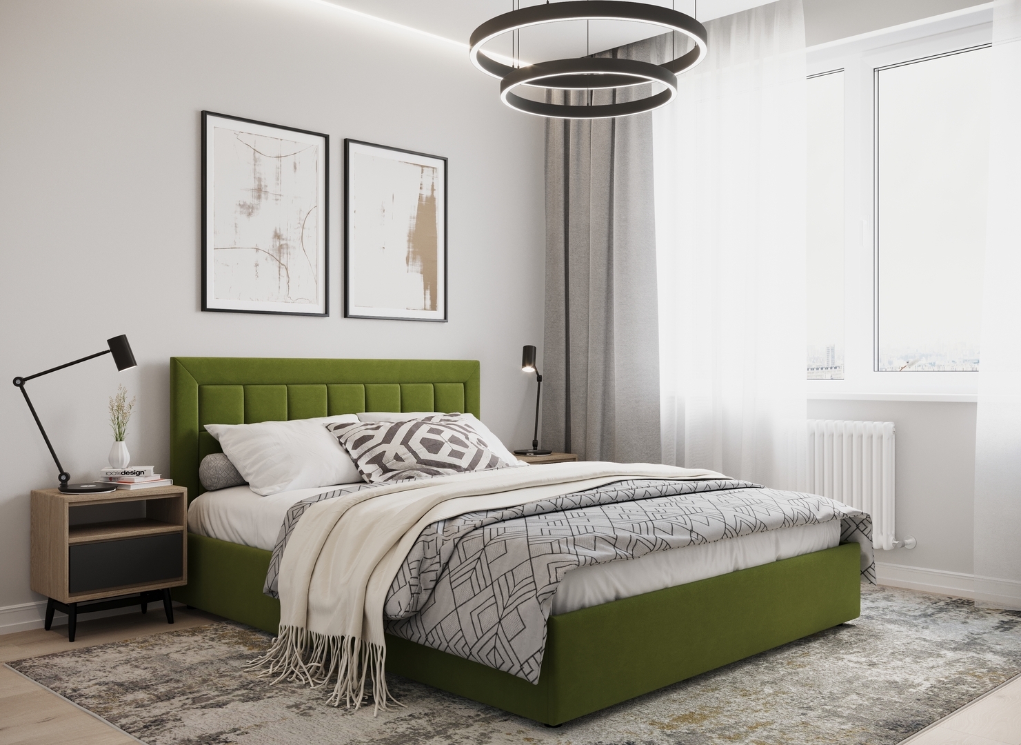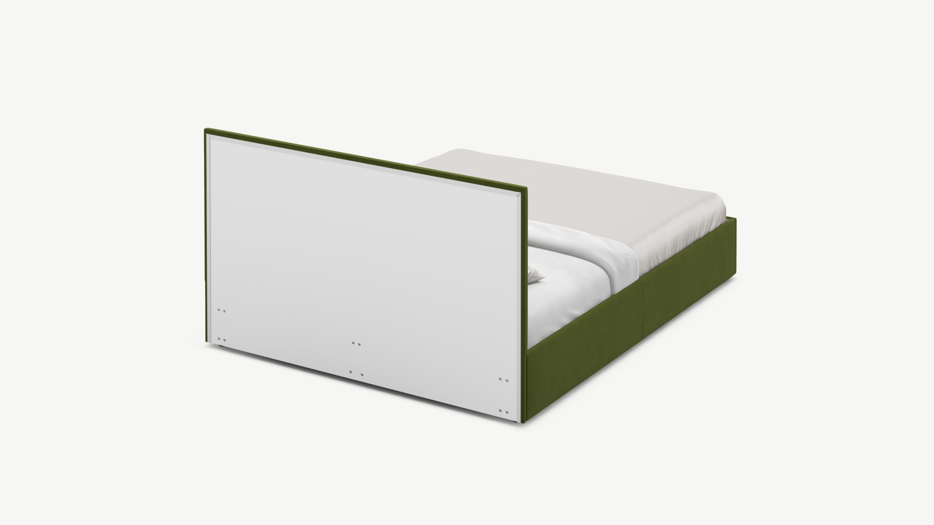 Стежка помещена в центр изголовья и обрамлена, словно картина. Объемные царги становятся гармоничным дополнением образа и завершают цельную фигуру кровати.