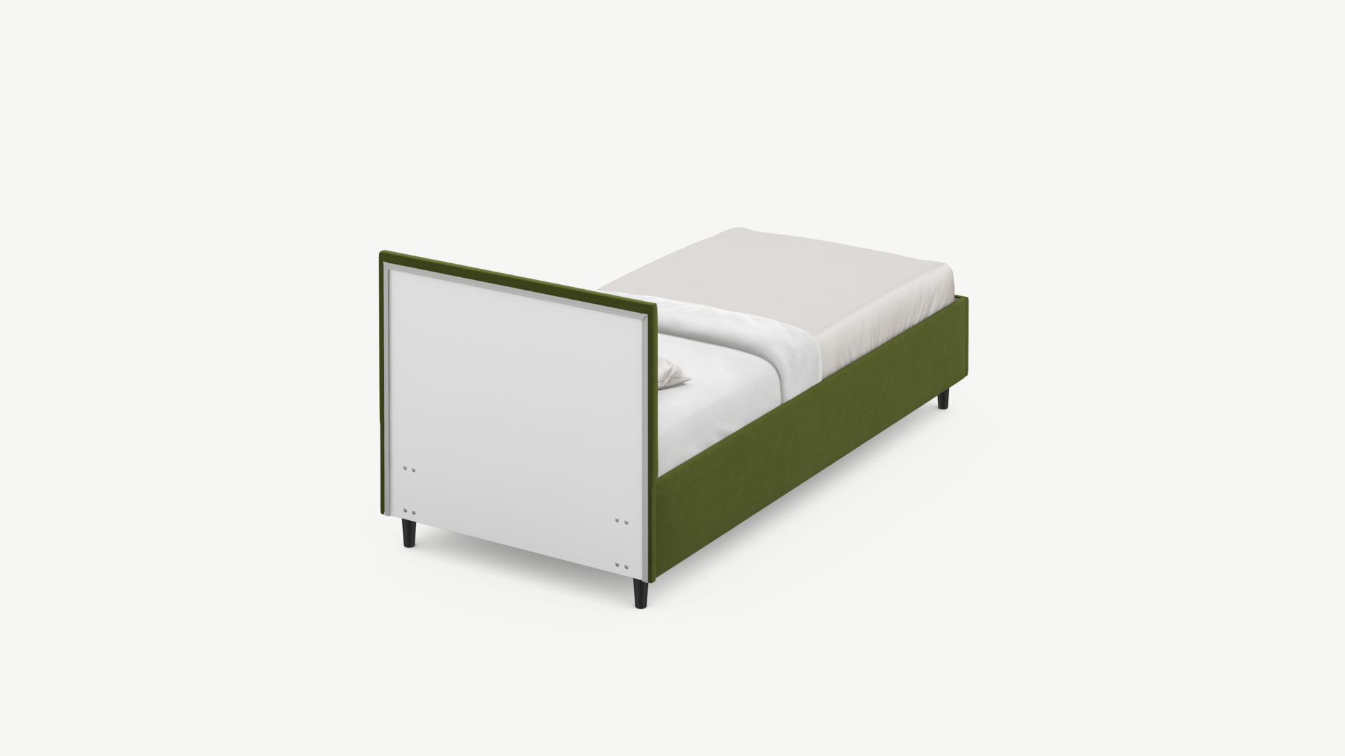 Рама, изголовье и царги надежно крепятся между собой, обеспечивая прочность и устойчивость кровати.