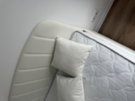 Благодарю за кровать! Искала компактную, но с мягким изголовьем и «основанием», а также с подъемным механизмом, и на ножках. Комната очень маленькая, нужна и функциональность, и удобство, и эстетика, здесь все сошлось воедино! Выбирала «вслепую», в оффлайн магазинах не было данной модели и нельзя было посмотреть цвета, но менеджер Ольга, помогла мне выбрать! Я очень волновалась, но оказалось — зря, привезли точно в срок, собрали очень быстро, все убрали за собой, все показали, в общем, все прошло легко, начиная от выбора заканчивая сборкой, я удивлена 🫶 Взяла в комплект бежевые ножки и декоративные подушки в тон, смотрится шикарно! Еще и цена очень приятная за такой сервис, надеюсь 🤞, кровать будет меня радовать ни один год!