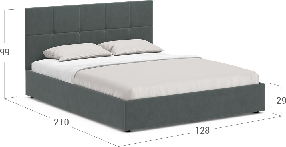 • Скрытая под основанием вместительная емкость без внутренних перегородок позволяет использовать всю площадь подкроватного пространства для хранения вещей.