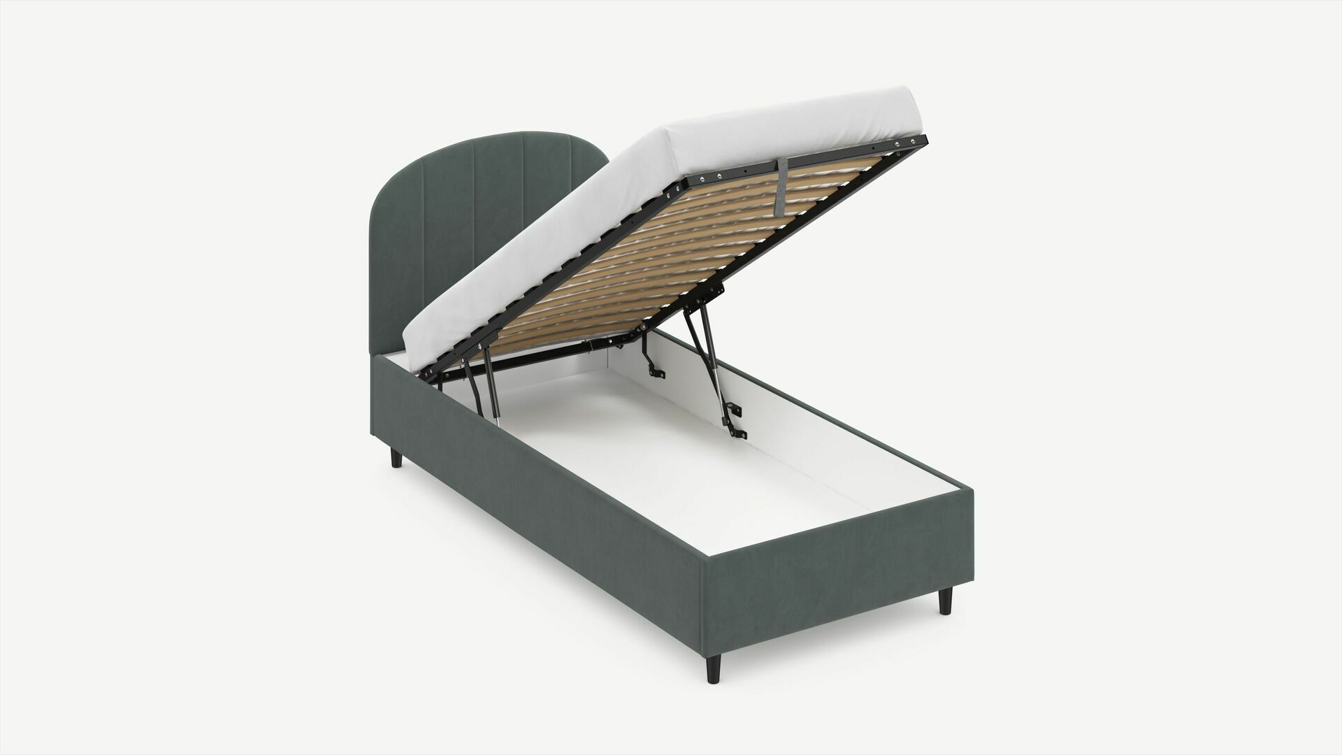 • Скрытая под основанием вместительная емкость без внутренних перегородок позволяет использовать всю площадь подкроватного пространства для хранения вещей.