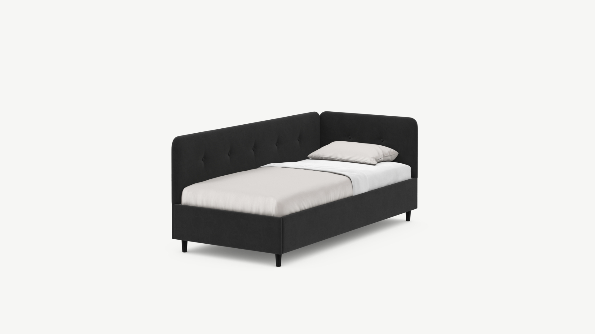 Кровать угловая с подъемным механизмомУгловая односпальная кровать MOON FAMILY 1253 с мягкой спинкой и изголовьем обладает округлыми формами, привносящими в интерьер нотки нежности. Изголовье, украшенное пуговицами, добавляет окружающему пространству шарм и уют. Высокие опоры придают кровати визуальной легкости, а также обеспечивают удобство во время уборки.
