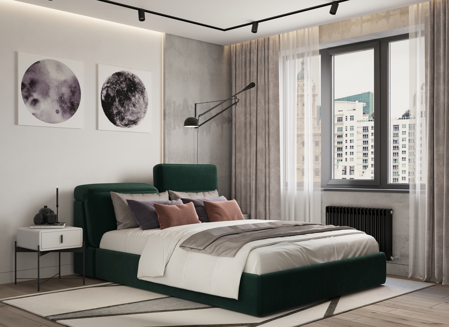 Недавно приобрели с мужем двуспальную кровать MOON 1107, и посей день очень довольны и не сожалеем о выбранной покупке. У нас она идеально вписывается в интерьер комнаты, имеет удобный растровый механизм для регулировки положения изголовья. В самой спинке кровати есть две вместительные емкости, удобно хранить, мы например, подушки туда убираем и покрывало, которые заказали тут же, очень красиво смотрится. Комфортно себя на ней чувствуешь, тело просто отдыхает. Ткань велюр, качество на высоте. Хороший выбор, буду советовать своим близким и родным!