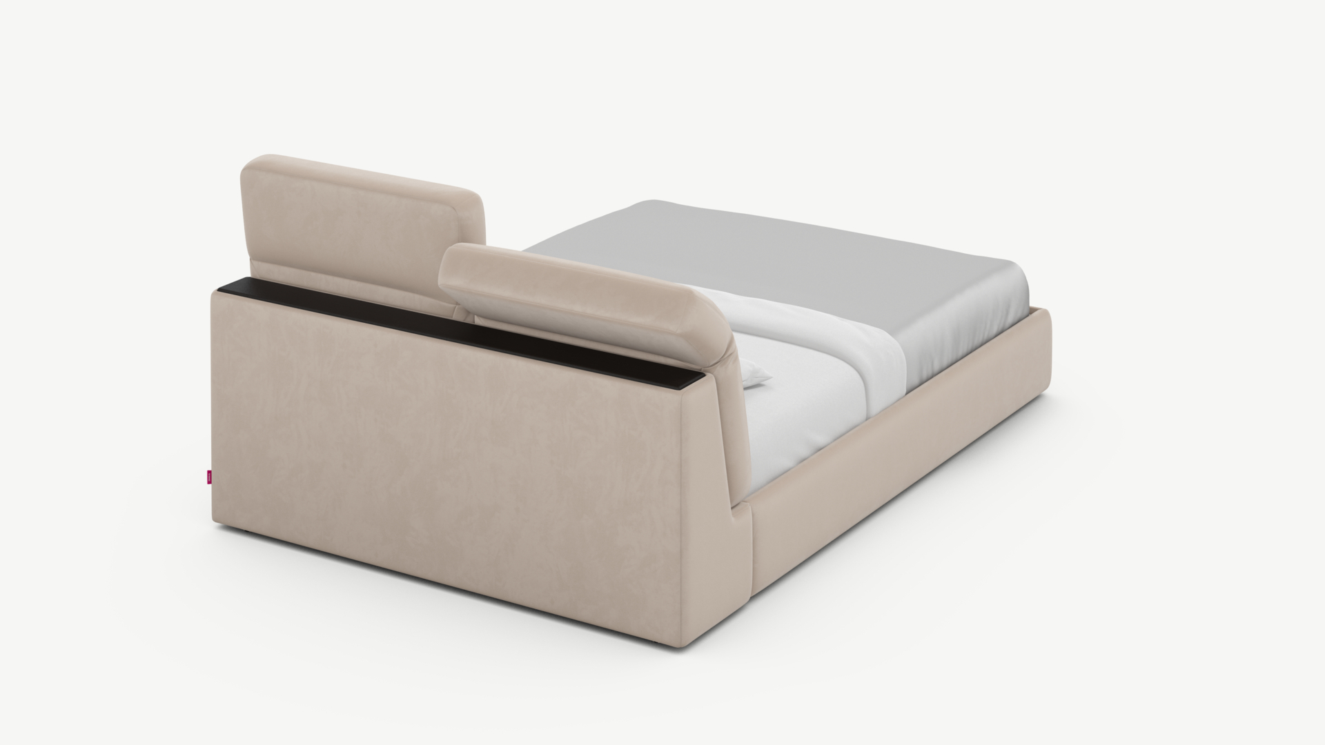 Изголовье подчеркивает эстетику MOON 1107, а также дарит дополнительный комфорт и уют спальному месту. Обратная сторона изголовья выполнена в мебельной ткани и позволяет ставить кровать в центре комнаты для зонирования пространства.